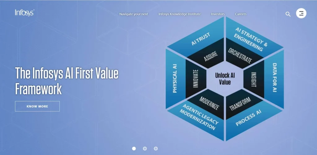 Infosys, one of the top IT companies in Greater Noida, provides college-level training on the basis of high-end campus facilities and extensive onboarding services. With their specialization in Infosys Cobalt cloud first and GenAI technologies, employees are also offered ongoing learning opportunities through the Lex platform. The company has formal career advancement and open promotion patterns. Among the benefits of growth, there are mentorship initiatives, leadership developmental paths, and exposure to innovative Next-Gen technology projects worldwide.