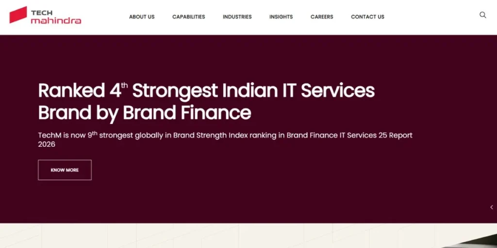 The Pune offices of Tech Mahindra house dedicated teams working on AI, blockchain, and immersive technologies such as AR/VR. As the IT arm of the Mahindra Group, the company uniquely combines manufacturing domain expertise with advanced software delivery capabilities. Freshers can enter through initiatives like the SMART Hiring Program, while the TechMNxt program supports next-generation technology innovation being developed in Pune.