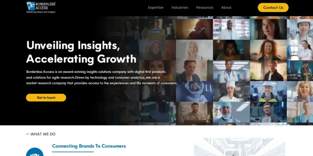 Borderless Access has been noted to be innovative when it comes to mobile-first research methods. Customers served by the company are in healthcare, finance and consumer markets.