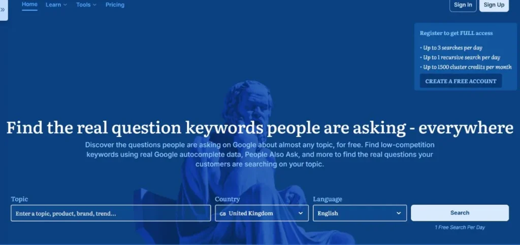 Best For: Bloggers and small businesses doing question-based keyword research.