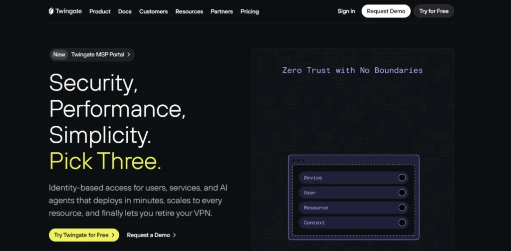 Twingate is a developer-friendly zero-trust platform created to unpack the old VPNs with minimal effort. It makes direct-to-resource design, traffic in this case flows directly to the user and to the site without going through a cloud proxy. It can be configured within one hour. DevOps and SRE teams like it because of its support of Terraform and Pulumi.